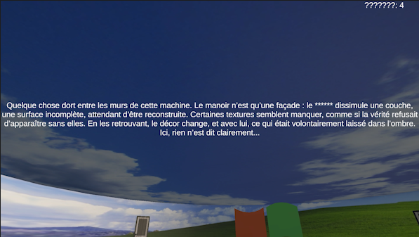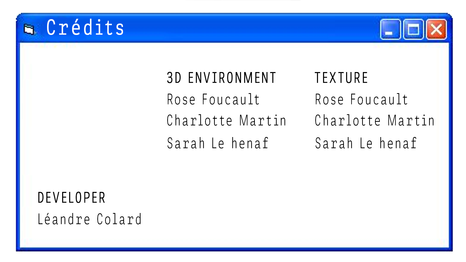 Z : avancer | Q : gauche | S : reculer | D : droite | E : interaction | Espace : sauter | Échap : pause
